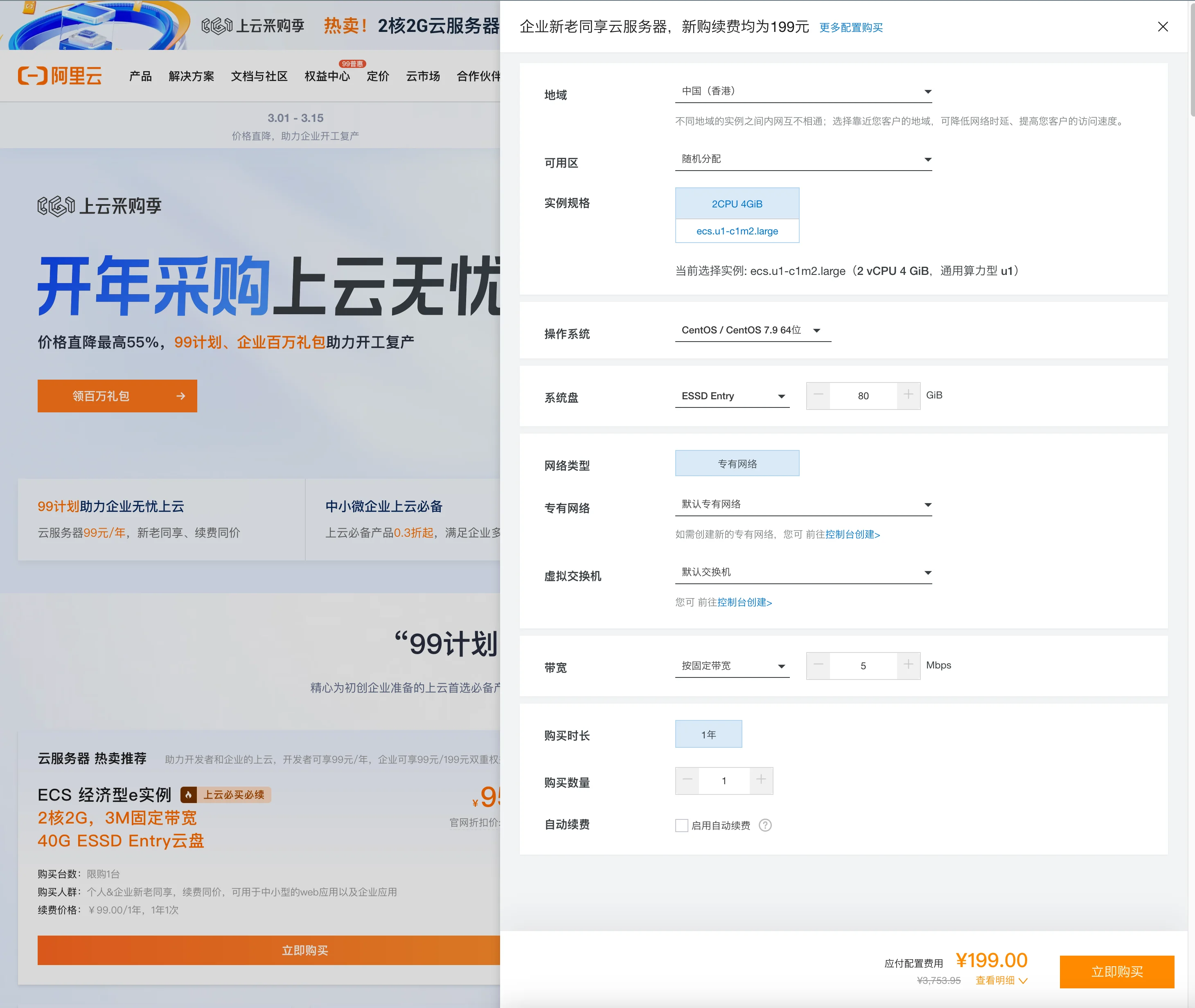 阿里云香港鸡199元/年[color=Red][size=4]续费同价[/size][/color] 算力型 u1 2核(vCPU) 4 GiB 5m