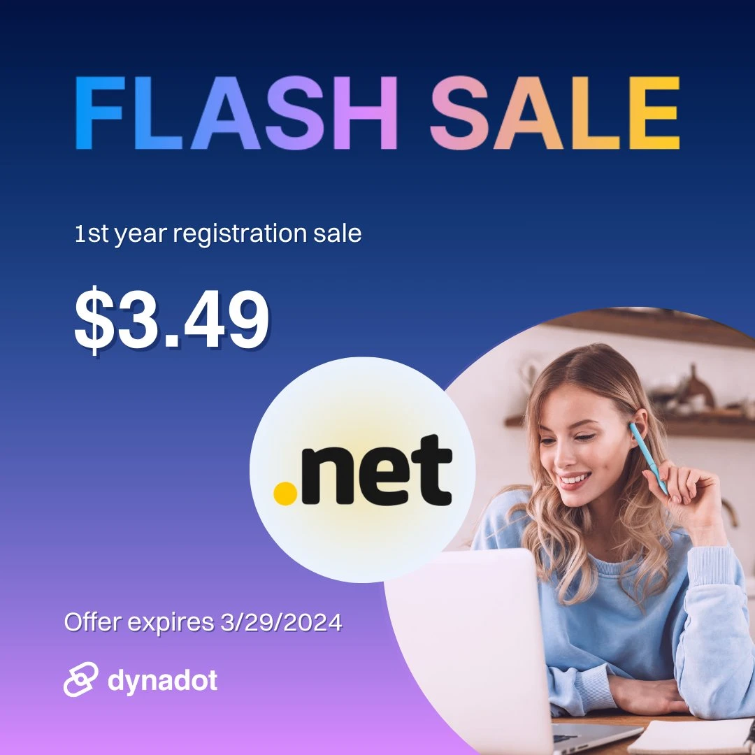 Dynadot正在进行 3.49美元 .NET注册闪购活动,