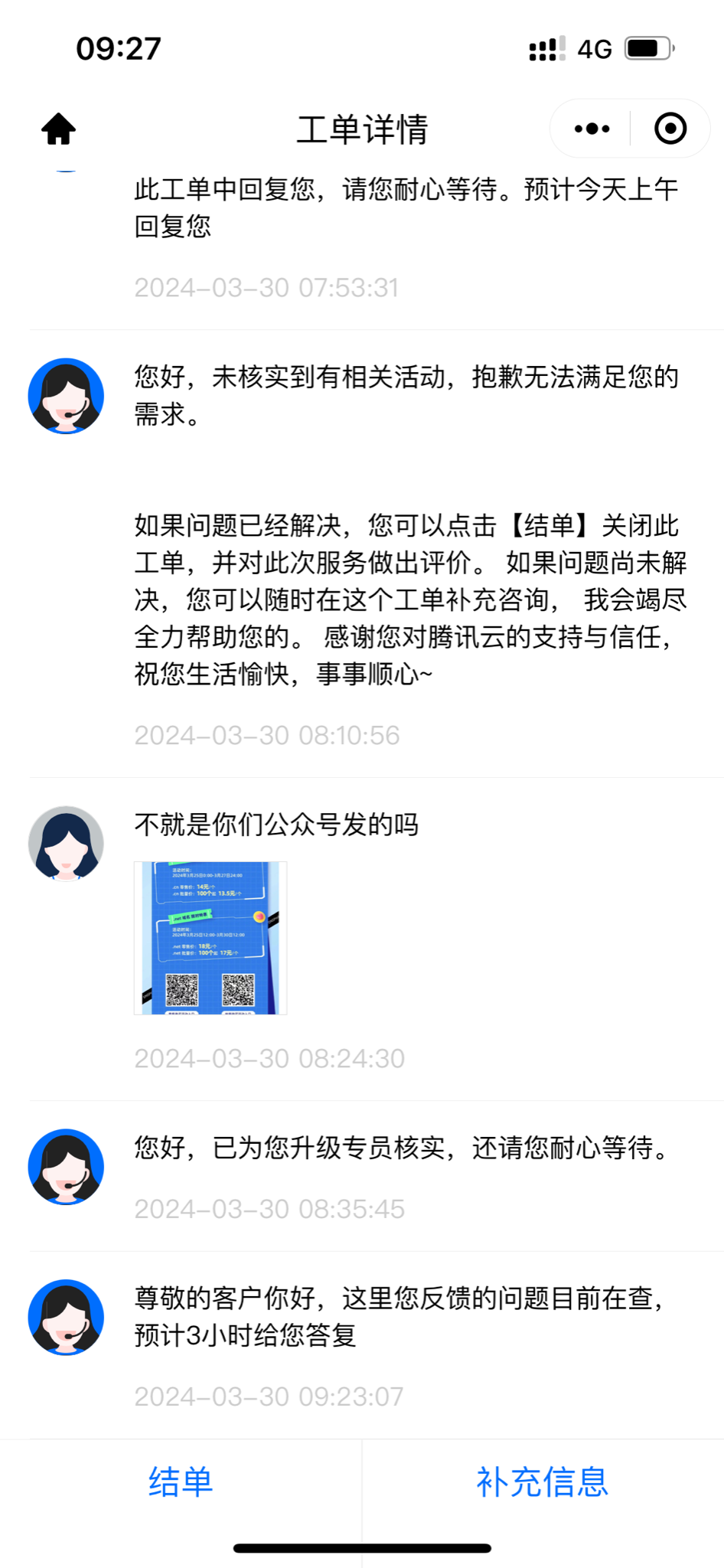 问客服 客服说没有这个活动,合着你们公众号是假的么,继续追问说3小时后给我回复 晕~ 3小时后活动时间都过了 在给我回复有屁用