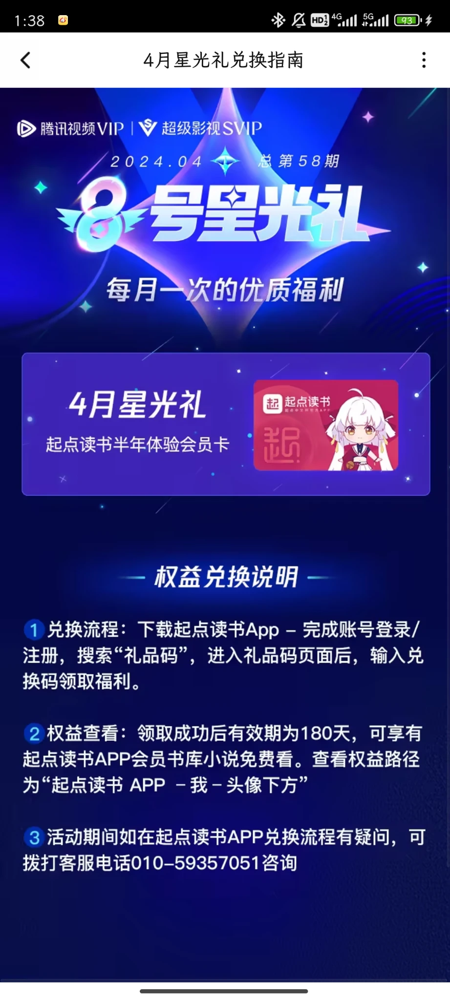 这个月的腾讯视频星光礼,现在是越来越没诚意了。反正我用不到起点读书,有需要的嘛,论坛私信我,送了