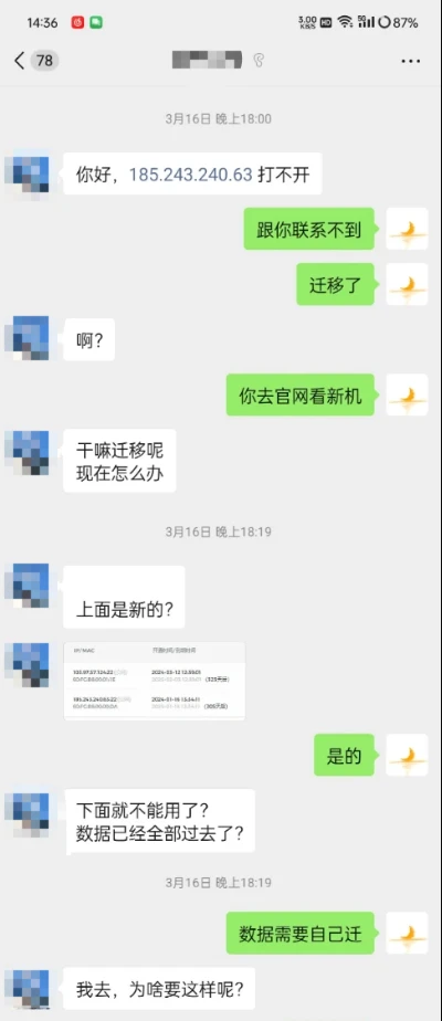 这一次又没迁移。过后机器下柜了就是一直威胁我说各种投诉