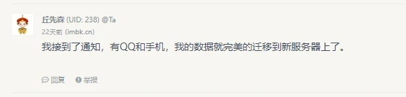 今天到看评论的时候我发现,他发帖子的时候也有我两个客户来评论说他们迁移成功了