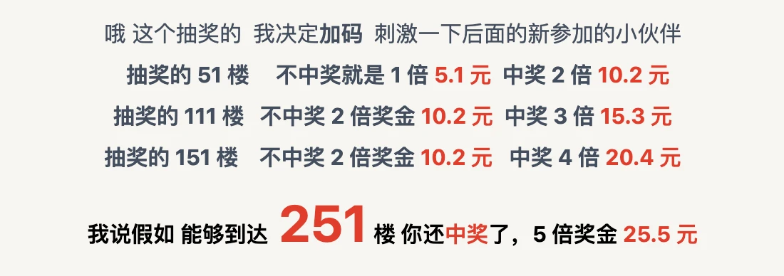 从评论中抽取 20 位用户,每人现金 5.1 元!每人可评论一次。