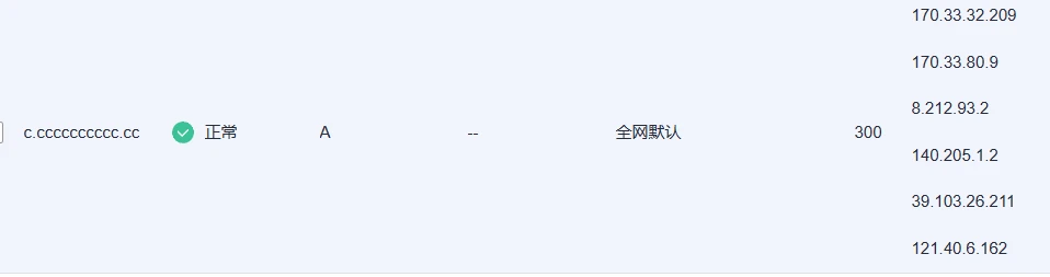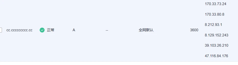 3. 将dns域名分别对应解析A记录到vip1.alidns.com和vip2.alidns.com的IP,IP填不完没关系(比如华为云最多填6个):