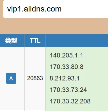2. 获取vip1.alidns.com和vip2.alidns.com的IP: