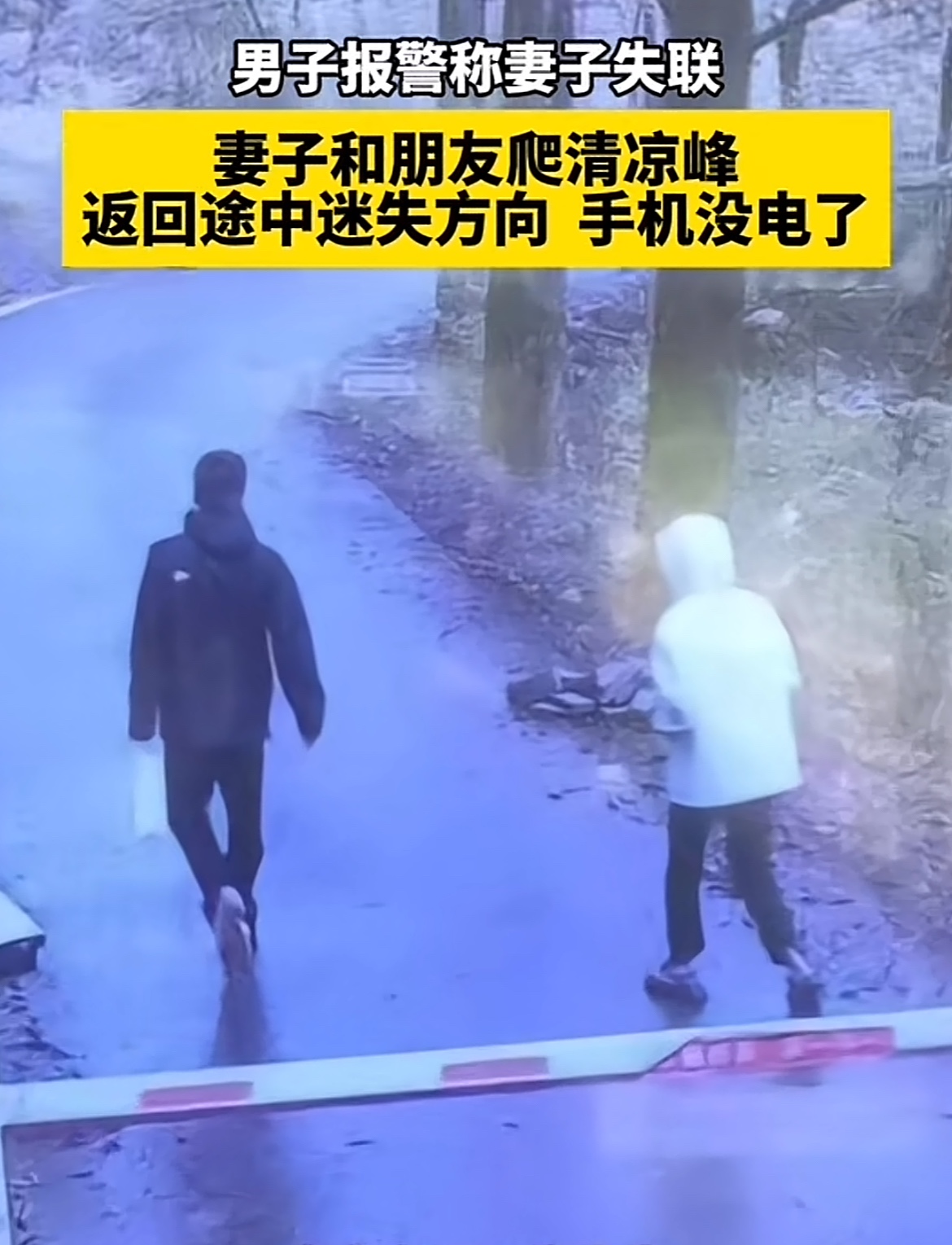 外地的朱先生报警称,自己老婆和另一刚认识不久的男子进山后失联,朱先生报警寻找,两天后找到两人送下山。
