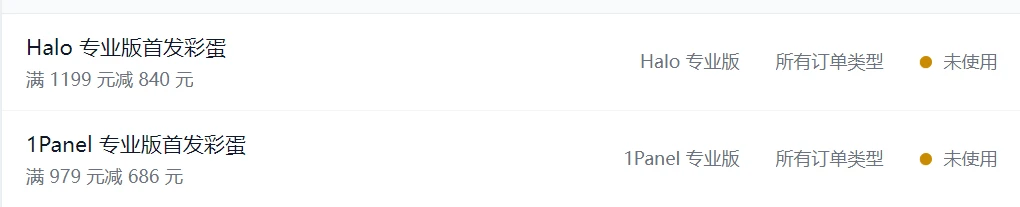 1Panel+Halo专业版3折优惠券