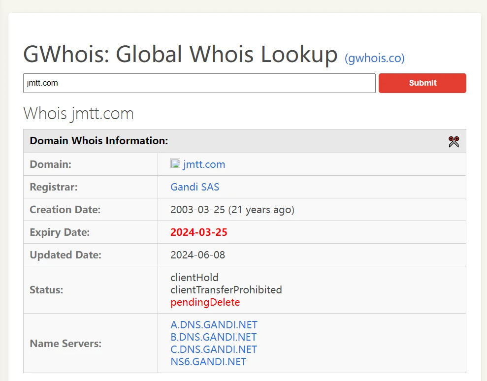 大家好,我叫gwhois,很高兴在这里认识大家。作为见面礼,我想分享一下平时自用的whois查询工具给大家:https://gwhois.co