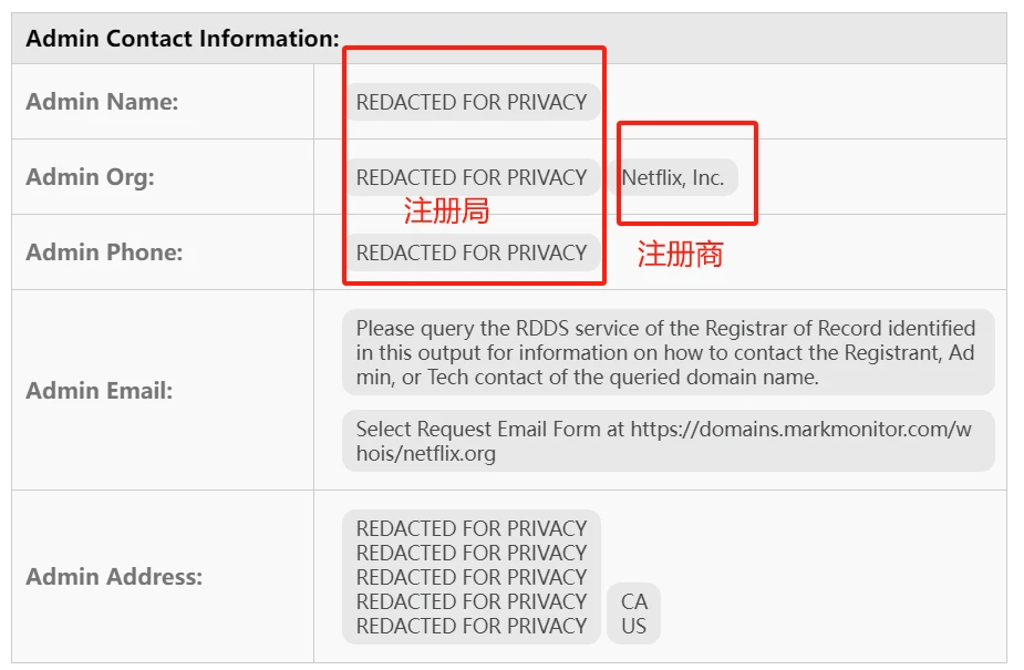 稍有不同就是对原始whois数据进行了解析,并将关键信息高亮显示。
