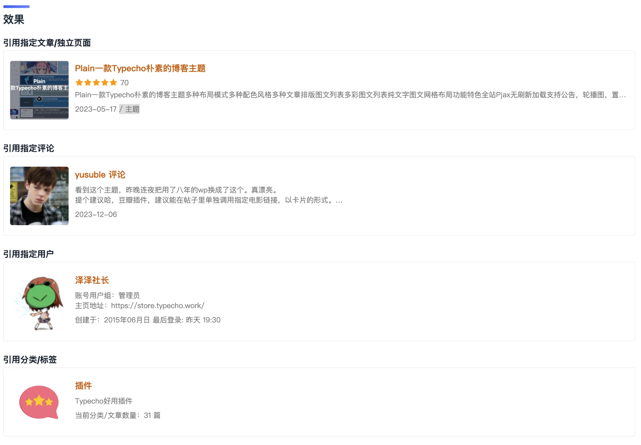 NiceQuote站内内容引用插件,可在文章里面引用文章,独立页面,评论,分类,标签,用户,进而展示相关信息,引用文章时会根据评论数量进行评分
