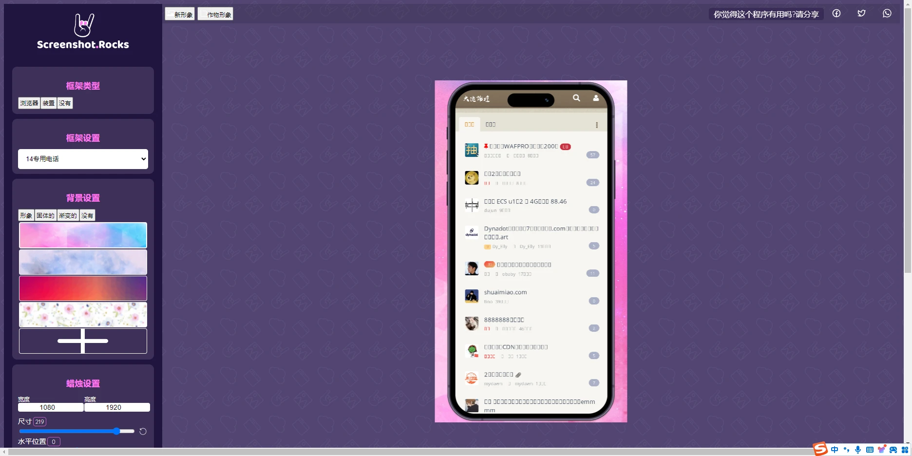 如果你想给你的网站截图后带边框效果或者自定义美化,可以用这个免费开源项目「Screenshot.rocks」只要输入你要生成截图的网站就会自动美化,功能方面支持选择边框效果、支持手机端效果、可设置背景颜色/样式、尺寸大小、阴影、边框圆角等。支持保存 PNG、JPEG、SVG 格式。