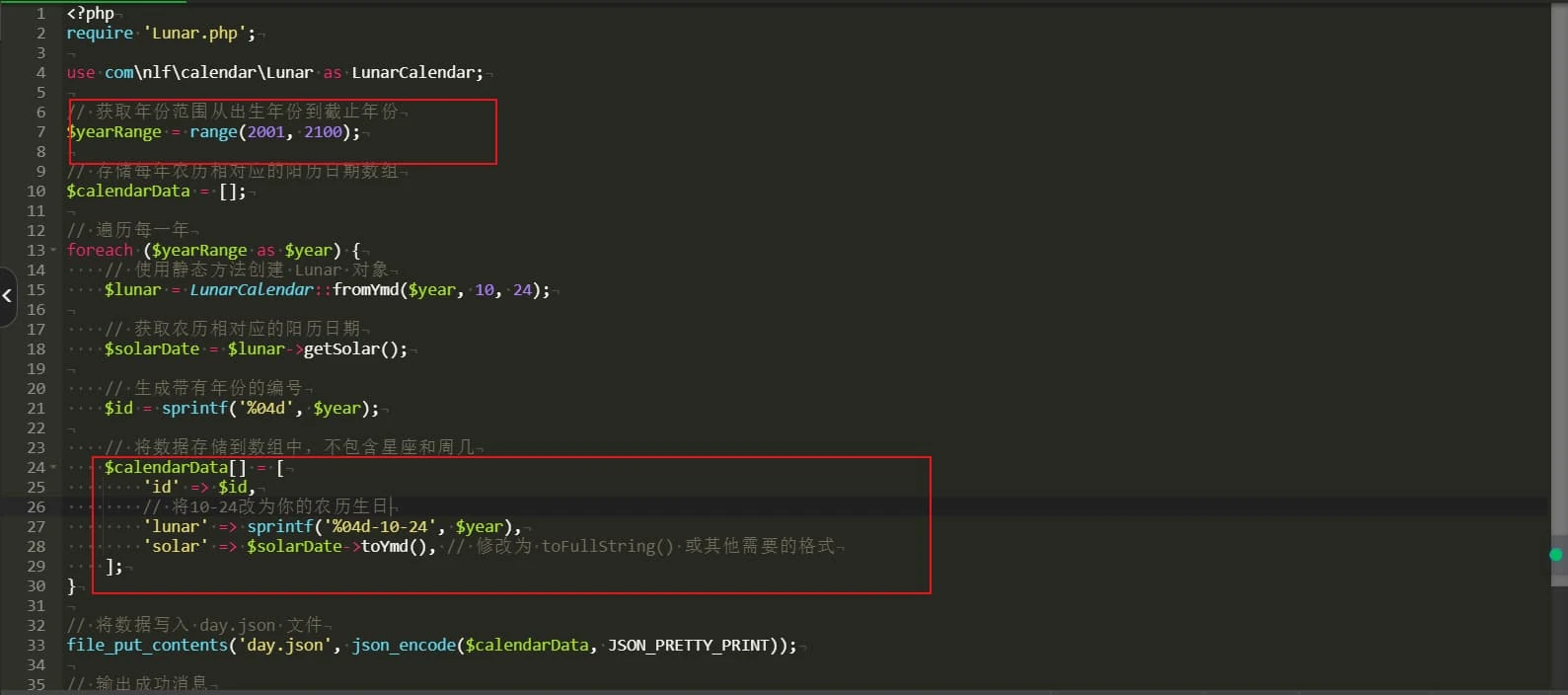 找到源码中的 api/index.php 文件,将年份和日期进行修改为你的生日