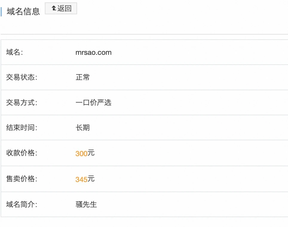 mrsao.com 快快快,看上个域名,限时特价,299。
