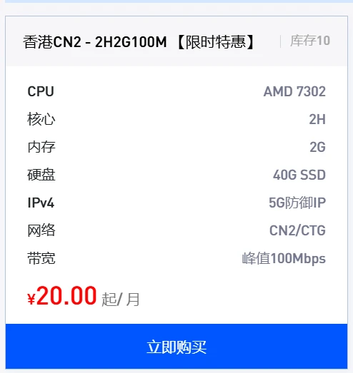 现在活动 2H2G 100M 只要20/月 只放10台 续费同价