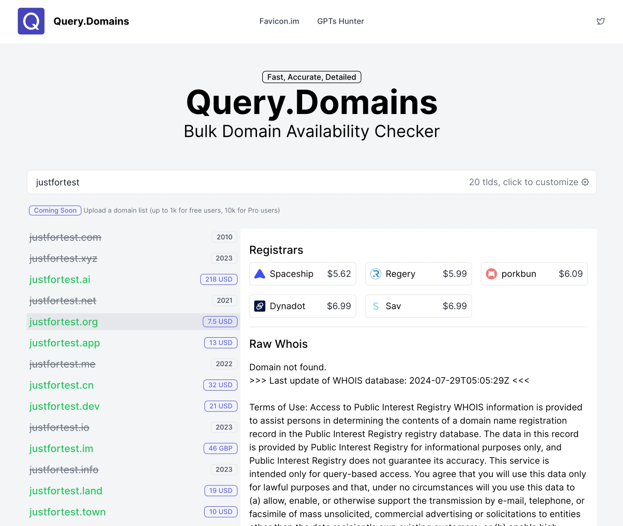 现在支持对未注册域名显示注册商列表、显示 for sale 标记、显示网站 icon(使用