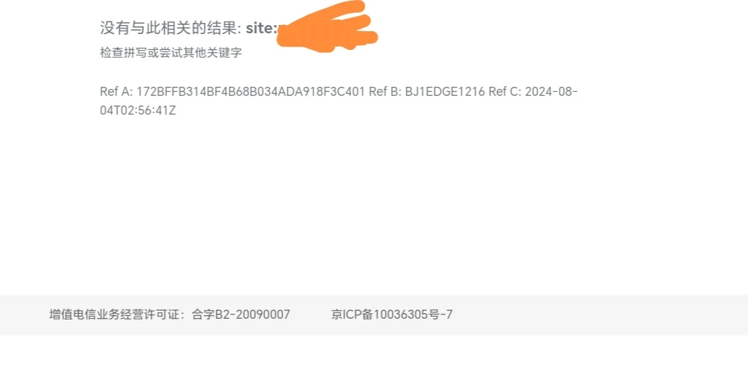 最近site:我的网站,以前收据是2k多,但是现在显示Ref A:错误。打开火箭site:能出现,但是关闭火箭提示Ref A:和没有结果。网上搜索答案说是浏览器问题,但是应该不是啊,求大佬们帮忙解答!