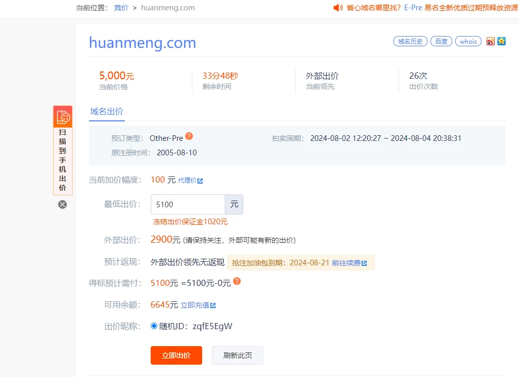 看中两个域名,就是出价超过预算了 唉