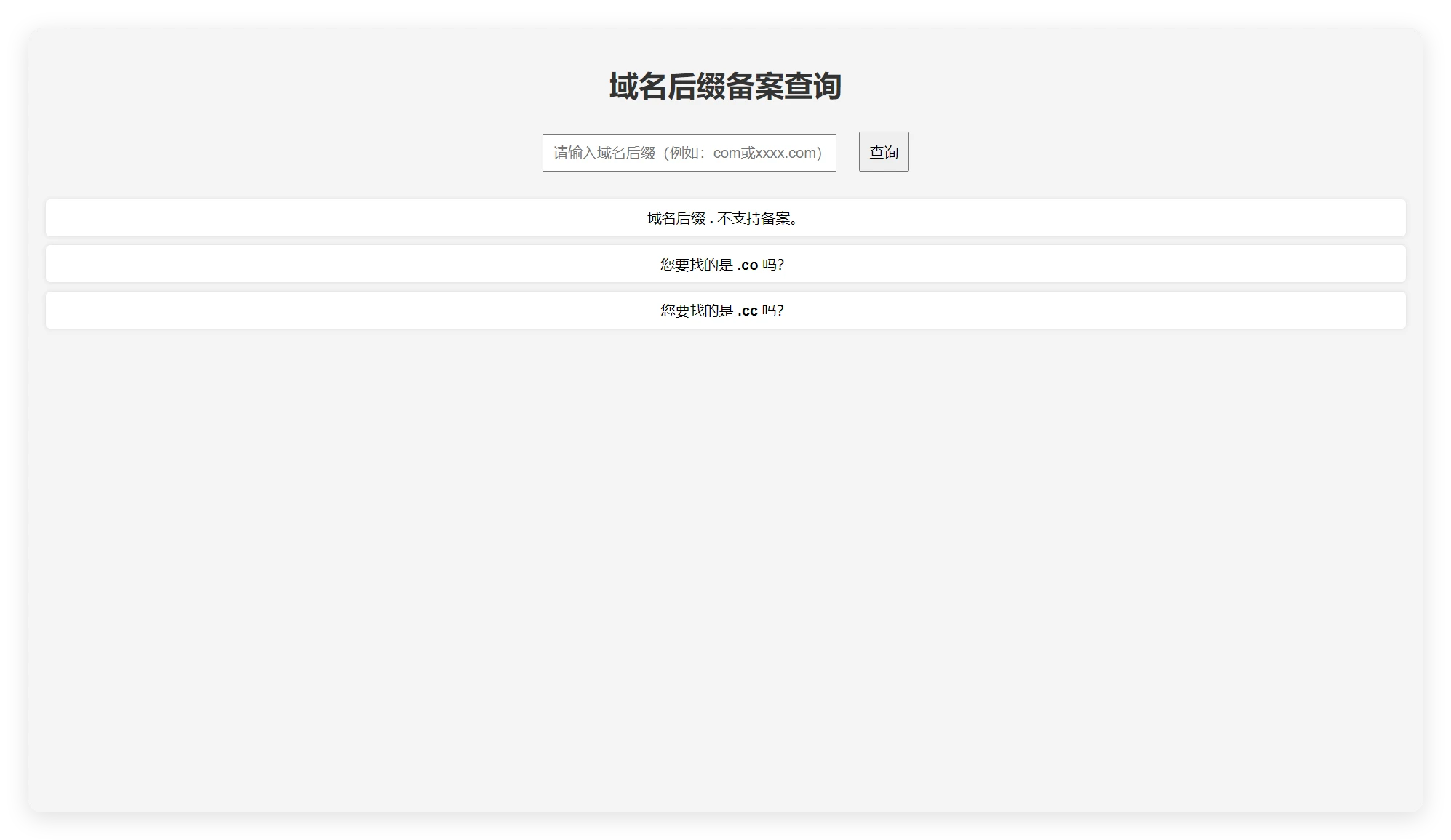 用AI简单写了个可备案 后缀查询php源码