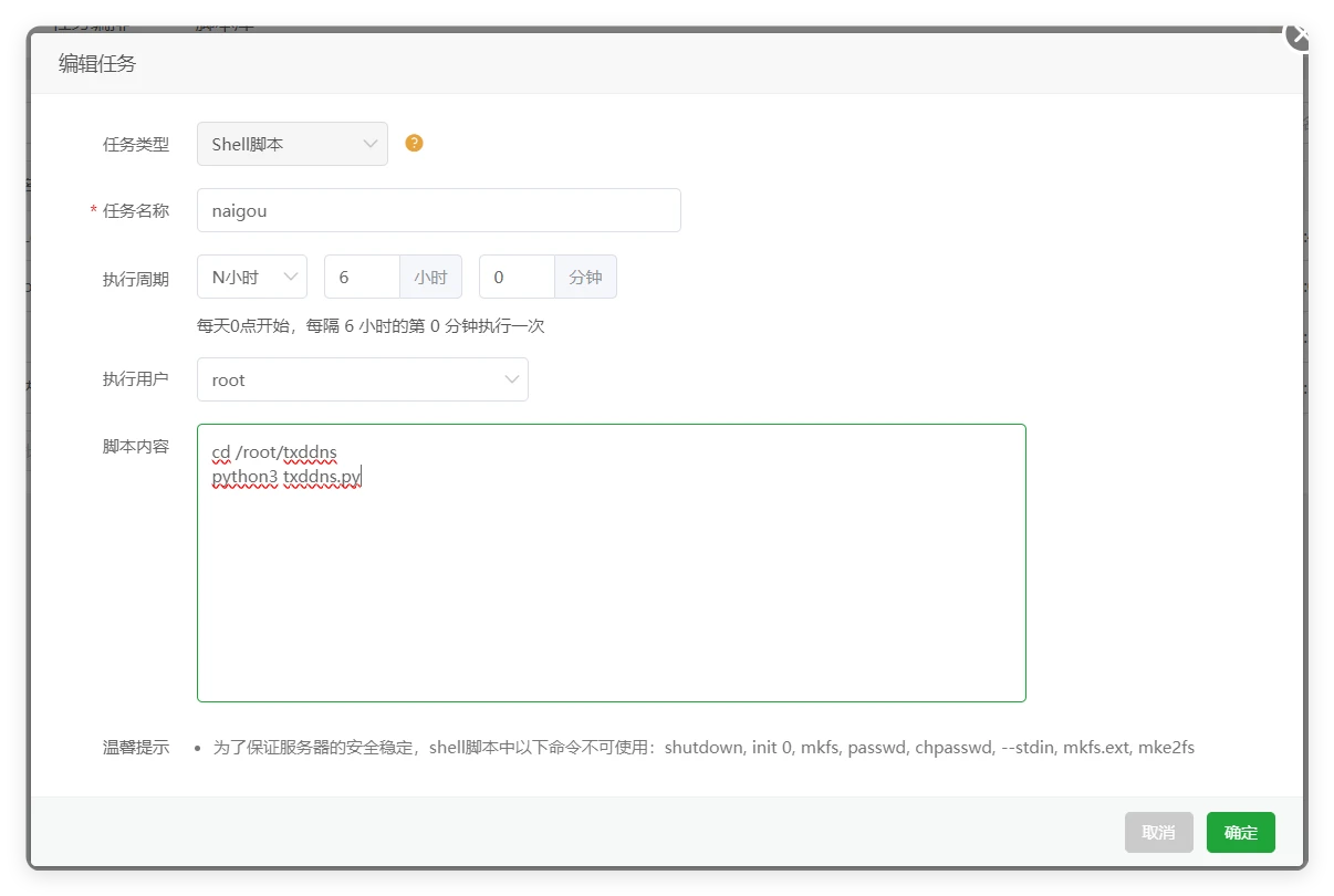 找到宝塔面板的计划任务 按图片对应添加 (执行周期按喜好填)
