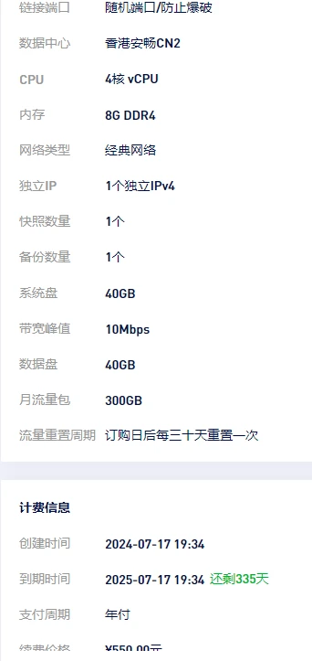 出一个 香港安畅CN2 4核 vCPU 8G DDR4机