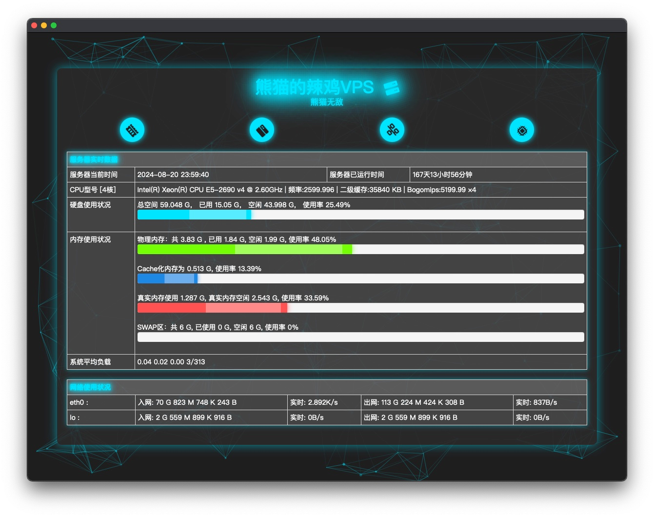 科技风格PHP服务器探针、一千行代码的显示效果