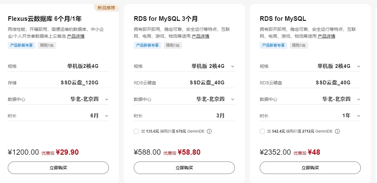 入手了一个云数据库,华为云现在48元一年,掉坑了已退款