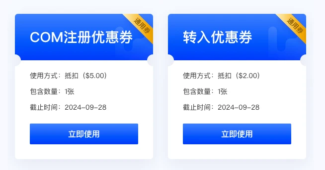 Verisign 即将于9月1日上调 .COM 域名批发价格,现在正是抢注 .COM 域名的黄金时机! 限时大促,注册新 .COM 域名立省 $5, 域名转入还能享受额外 $2 折扣,无需使用任何优惠码! 如何获取优惠: 点击此链接:立即注册您的域名 轻松省钱:折扣将自动应用,首年注册费用低至 $6.80。 千万别错过! 在价格上涨前,以更优惠的价格抢下您的 .COM 域名。立即行动,享受这个绝佳机会!
