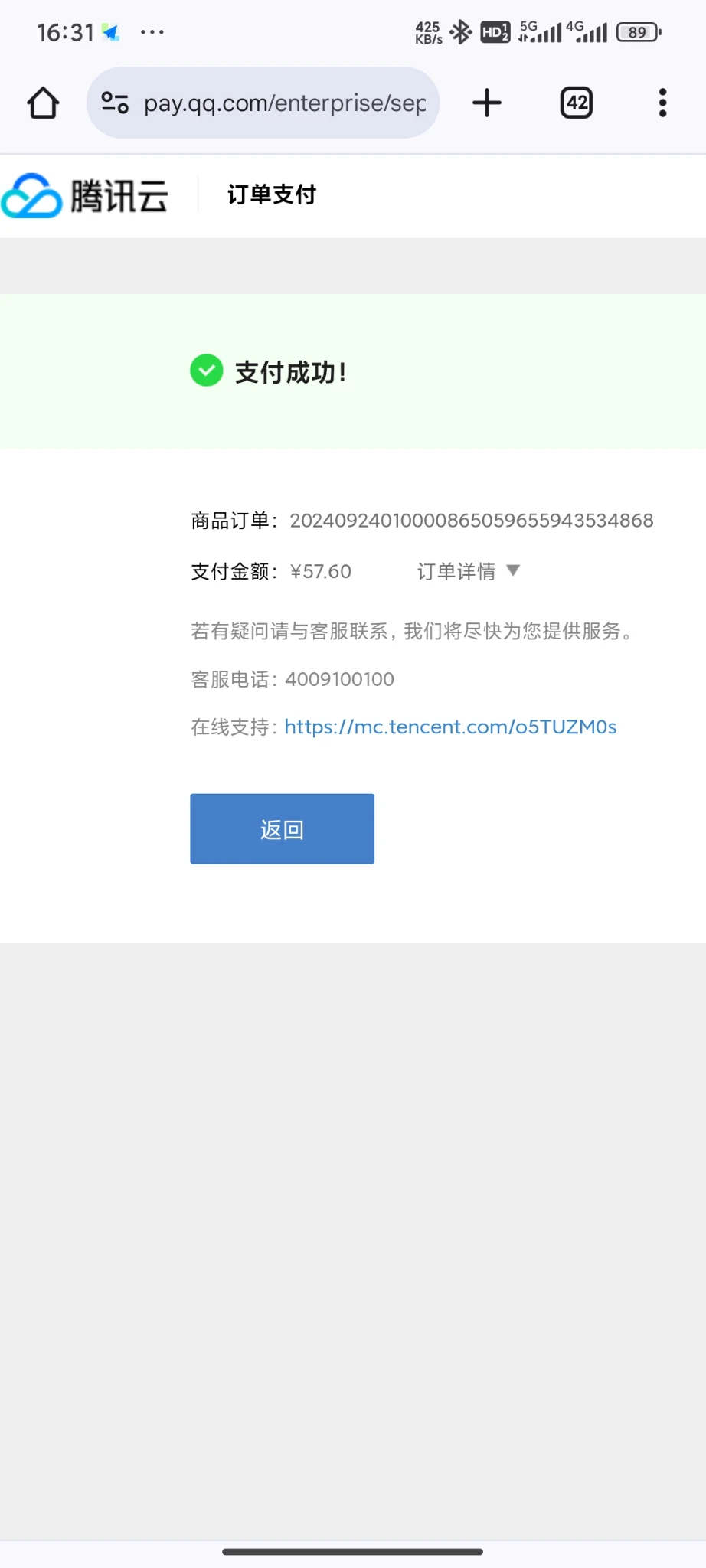 刚刚活动50元续费了一年腾讯云轻量云服务器