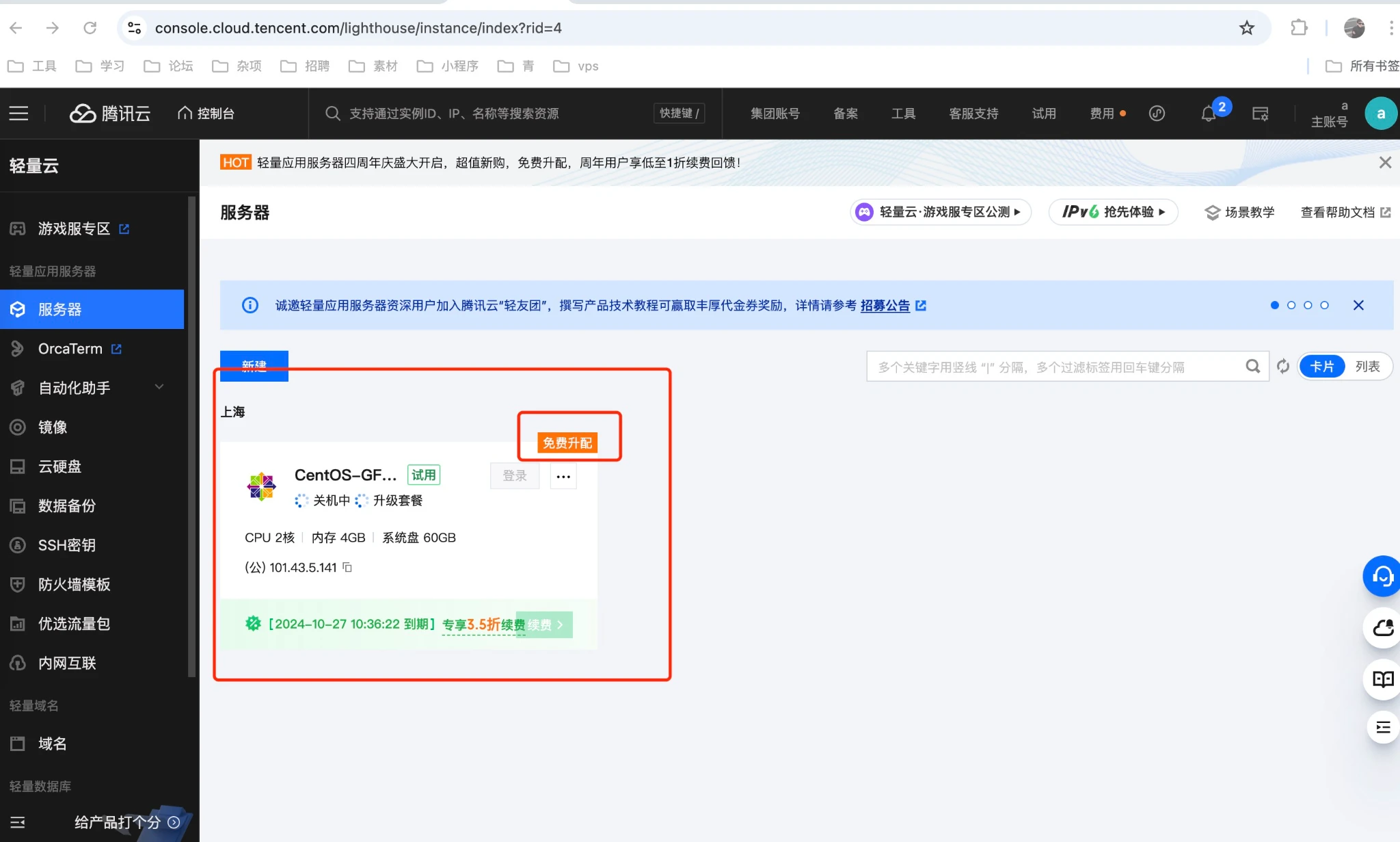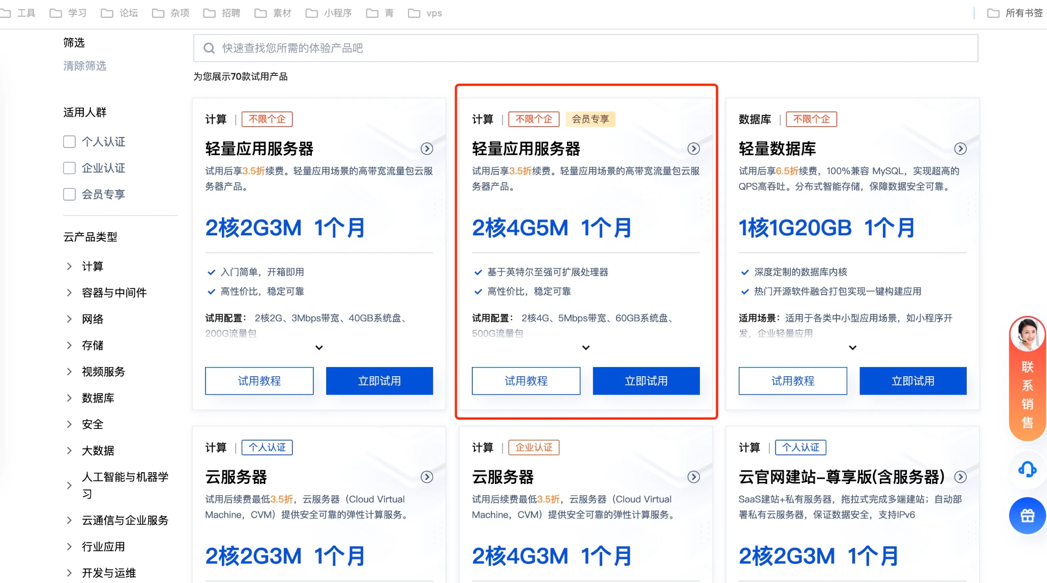 1.首先我们去免费专区嫖一个月2h4g服务器。