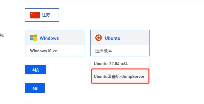最后一个商品就是江苏NAT云电脑,选择系统选择“Ubuntu堡垒机-JumpServer