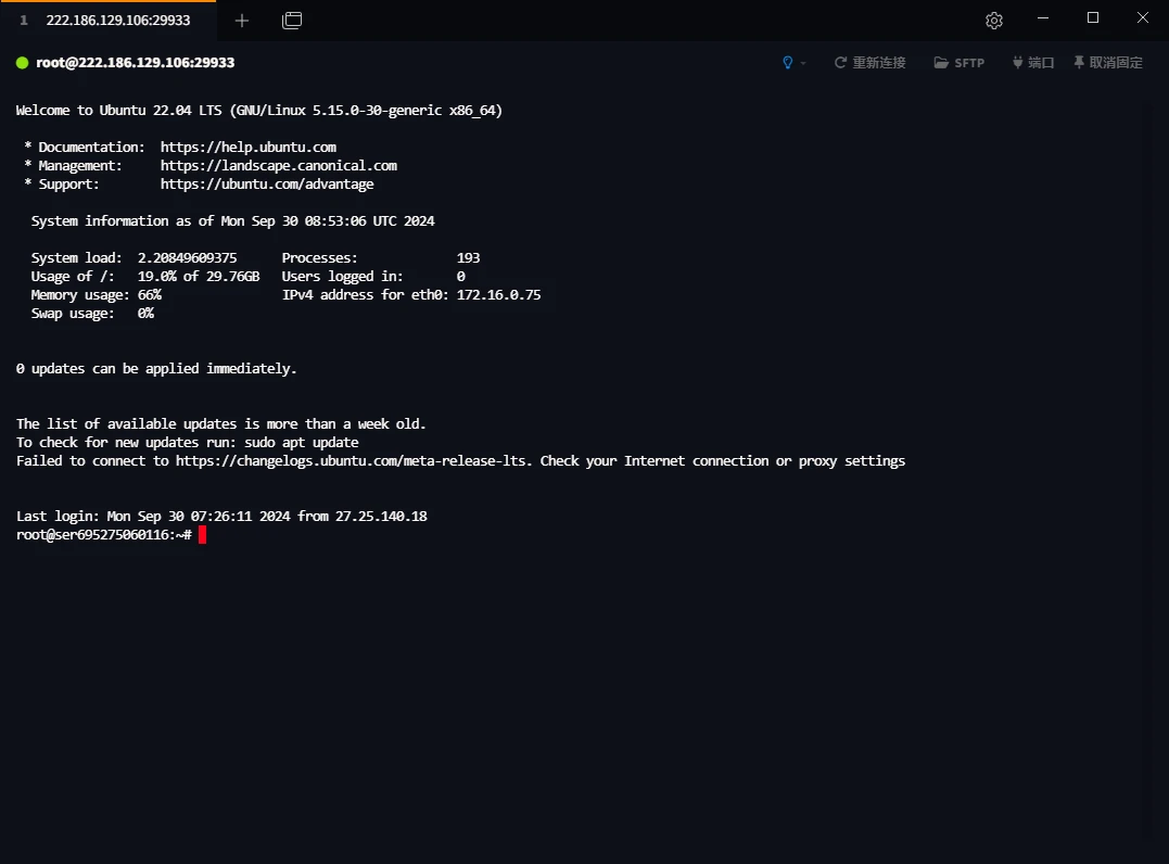 等待开通,系统安装完成后使用SSH工具连接服务器  推荐:宝塔SSH、Tabby、Finalshell等等