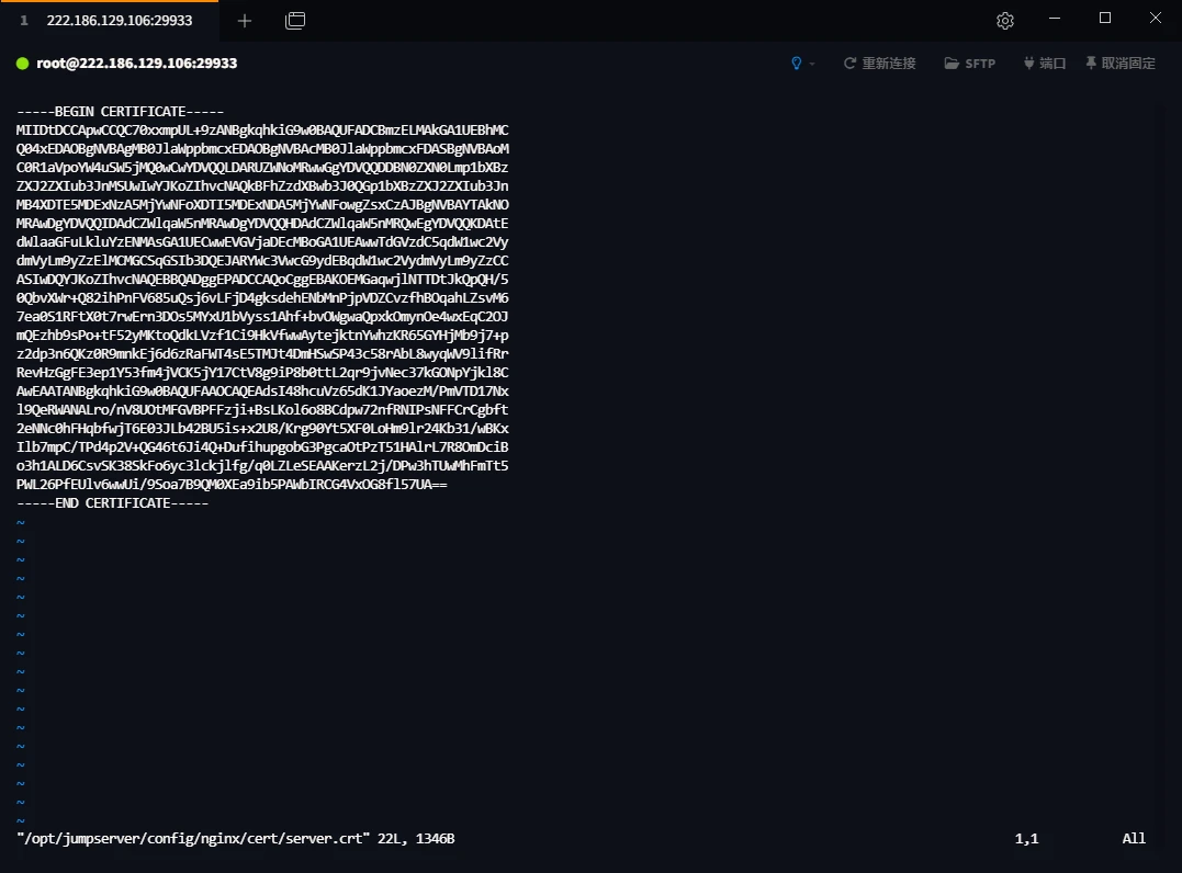 vi /opt/jumpserver/config/nginx/cert/server.crt