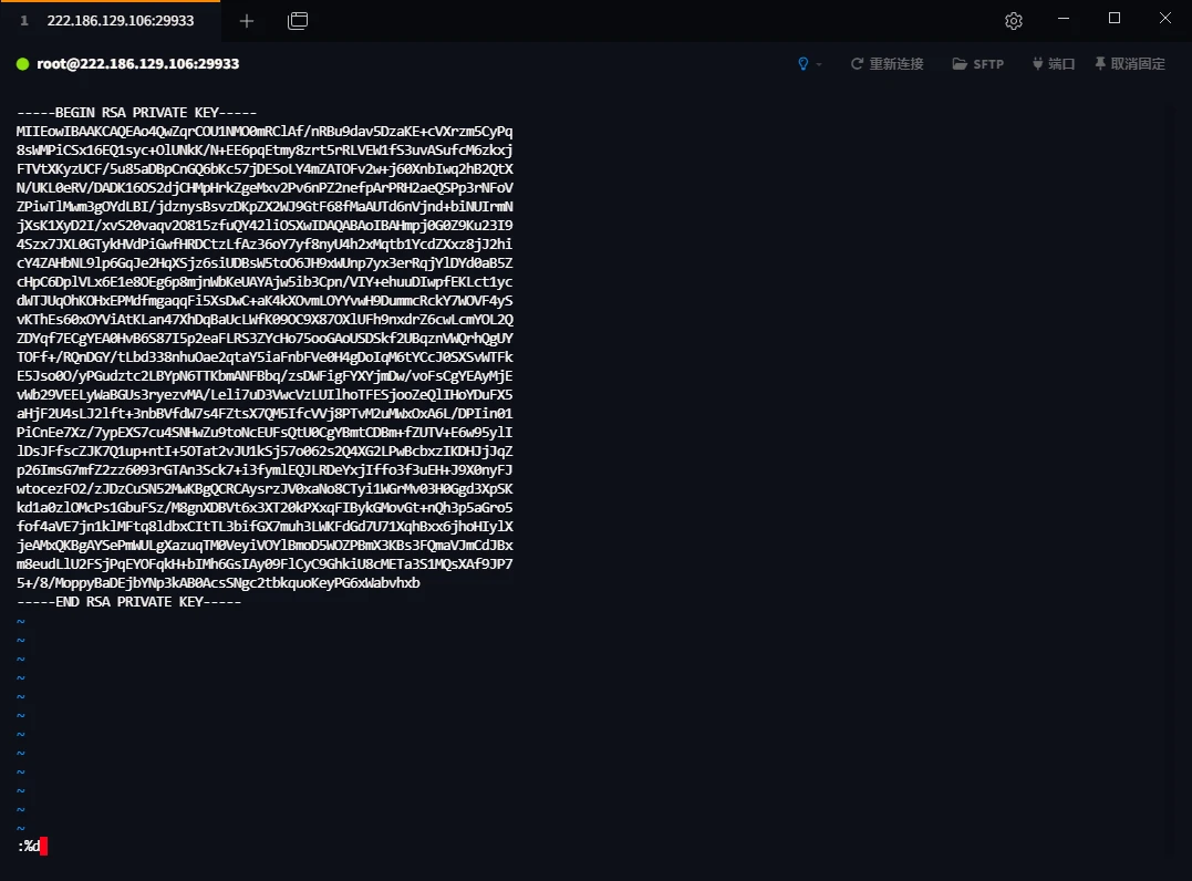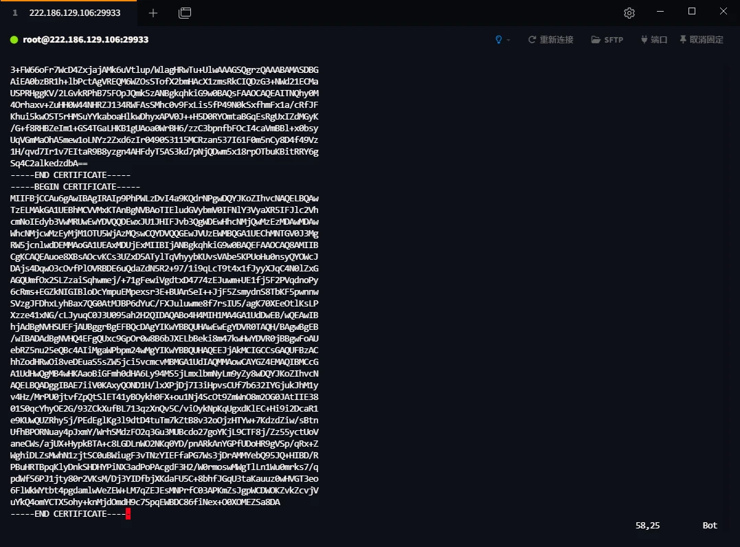 ,随后按下【Insert】键进入编辑模式,粘贴您的证书(pem/crt)文件内容。