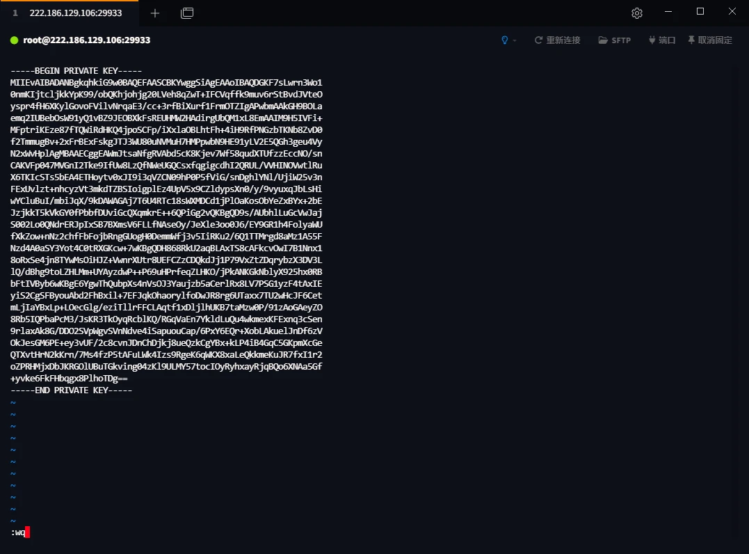 粘贴好之后按下【ESC】键,随后按下【:wq】回车 保存并退出。
