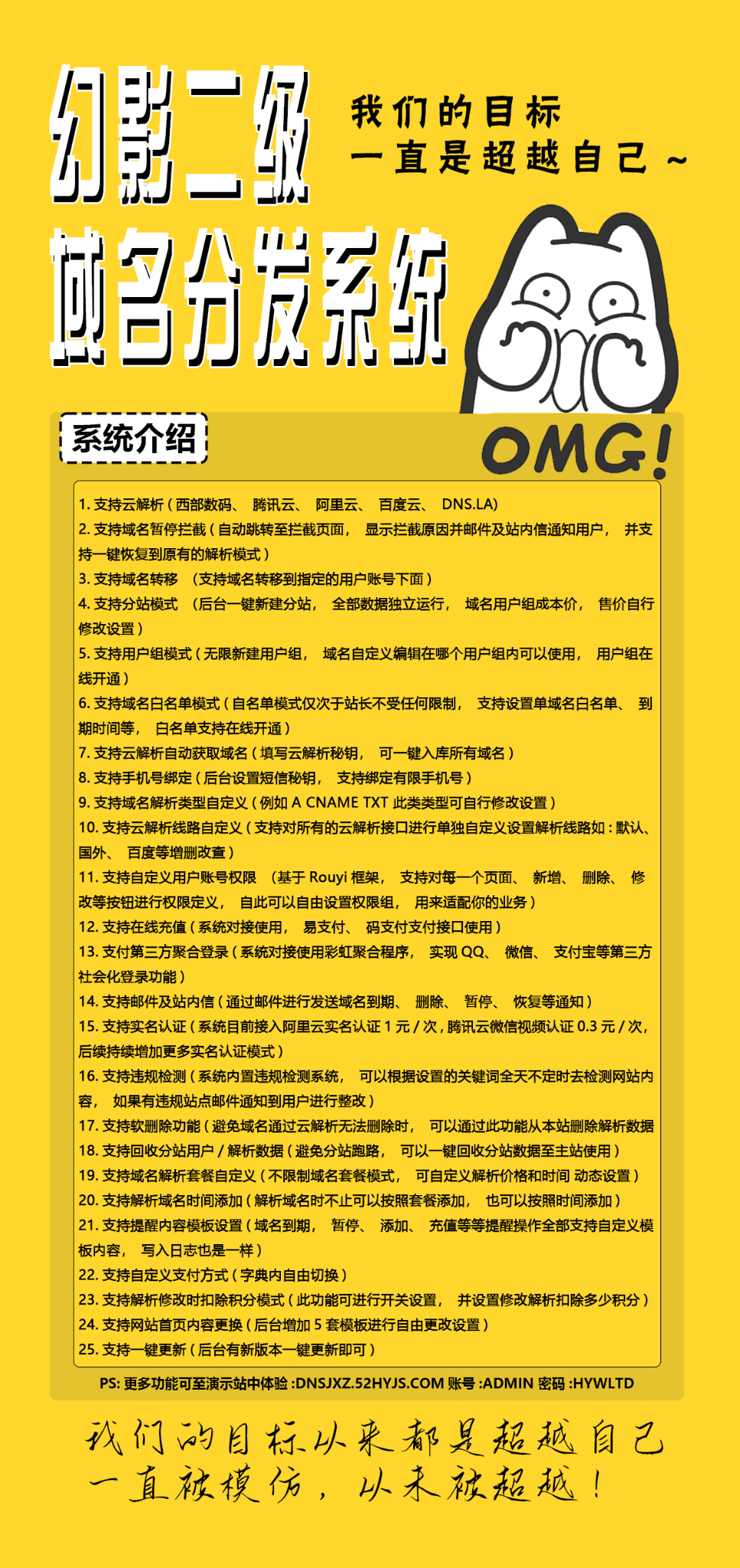 演示站:dnsjxz.52hyjs.com/login 账号 admin 密码 hywltd123