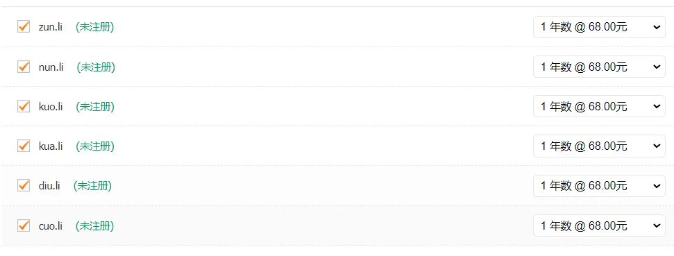 我去!居然还有好几个li的单拼没被注册,我抢了个huan.li