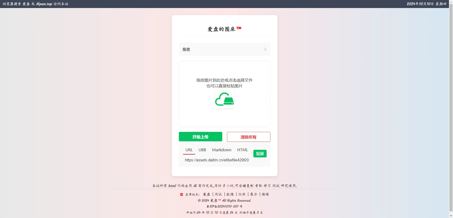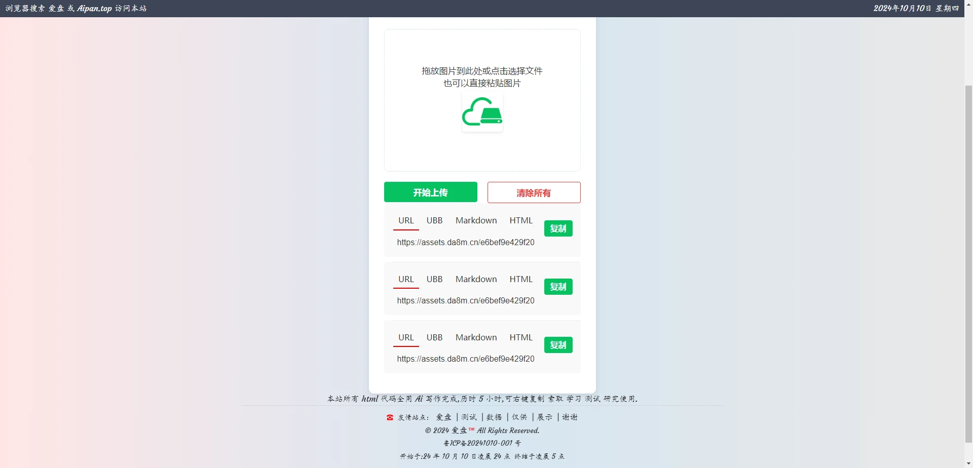等我写完了开源! 继续增加 不同地区不同语言显示 以及N多可能想到的效果 如果有好的建议留言 我采纳添加!定制属于你们自己的 图床网站