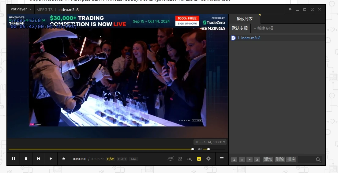 由于没有找到能用的网页M3U8直播播放器,只能想看的自己去播放了,我自己永portplayer可以播放