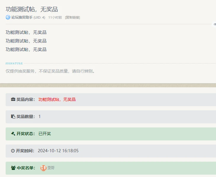 正式抽奖从未中过,想不到在测试里边体验了下中奖的感觉
