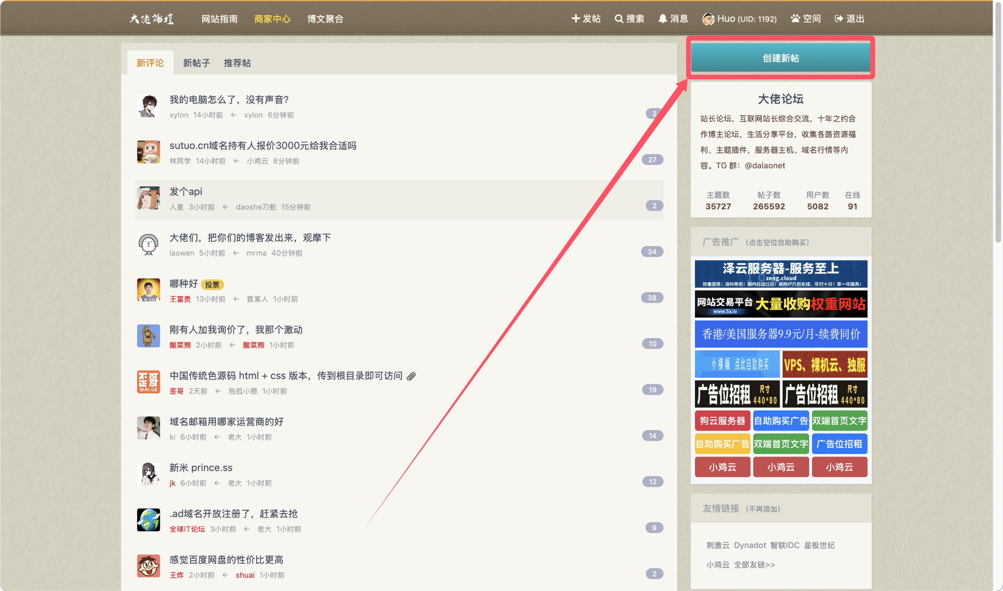 创建新帖