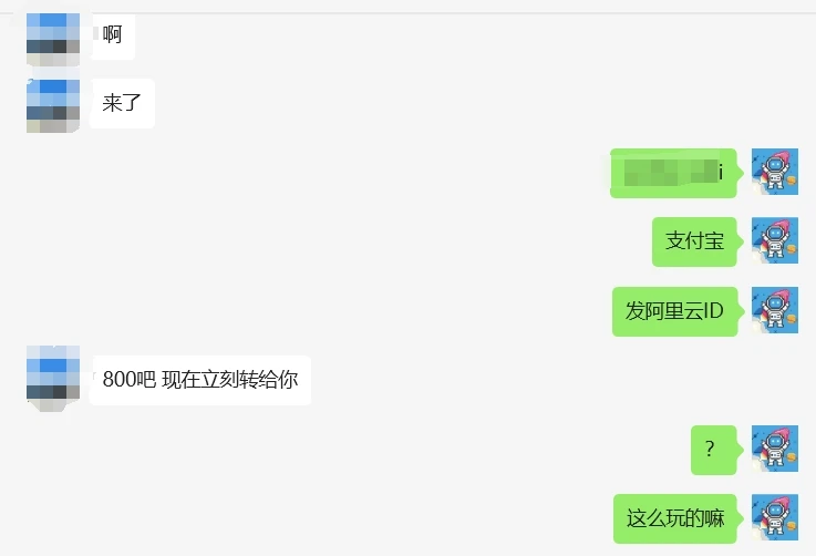 然后我实在等不了了,我朋友也在问我能不能凑点先给他,于是我打微信电话给那位坛友,无应答,但是消息秒回,说来了,但是来了一句“800吧 现在立刻转给你”