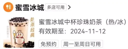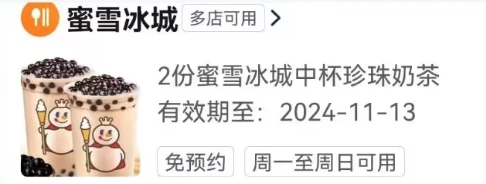 抽4人获得蜜雪冰城奶茶核销券,中奖者需持核销码前往蜜雪冰城门店核销兑换。