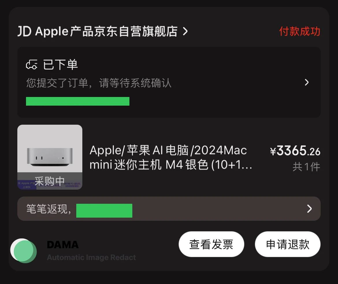 广东省电脑补贴可以成功下单 MacMini M4 版本并享受该补贴,并且部分幸运用户可以使用 5000-300 元优惠券叠加补贴,京东同时赠送三选一(爱奇艺年卡、腾讯年卡、数据线)可以到手回血,未回血付款价格 3365 元,广东电脑补贴可发全国并且不需要虚拟定位即可领取。