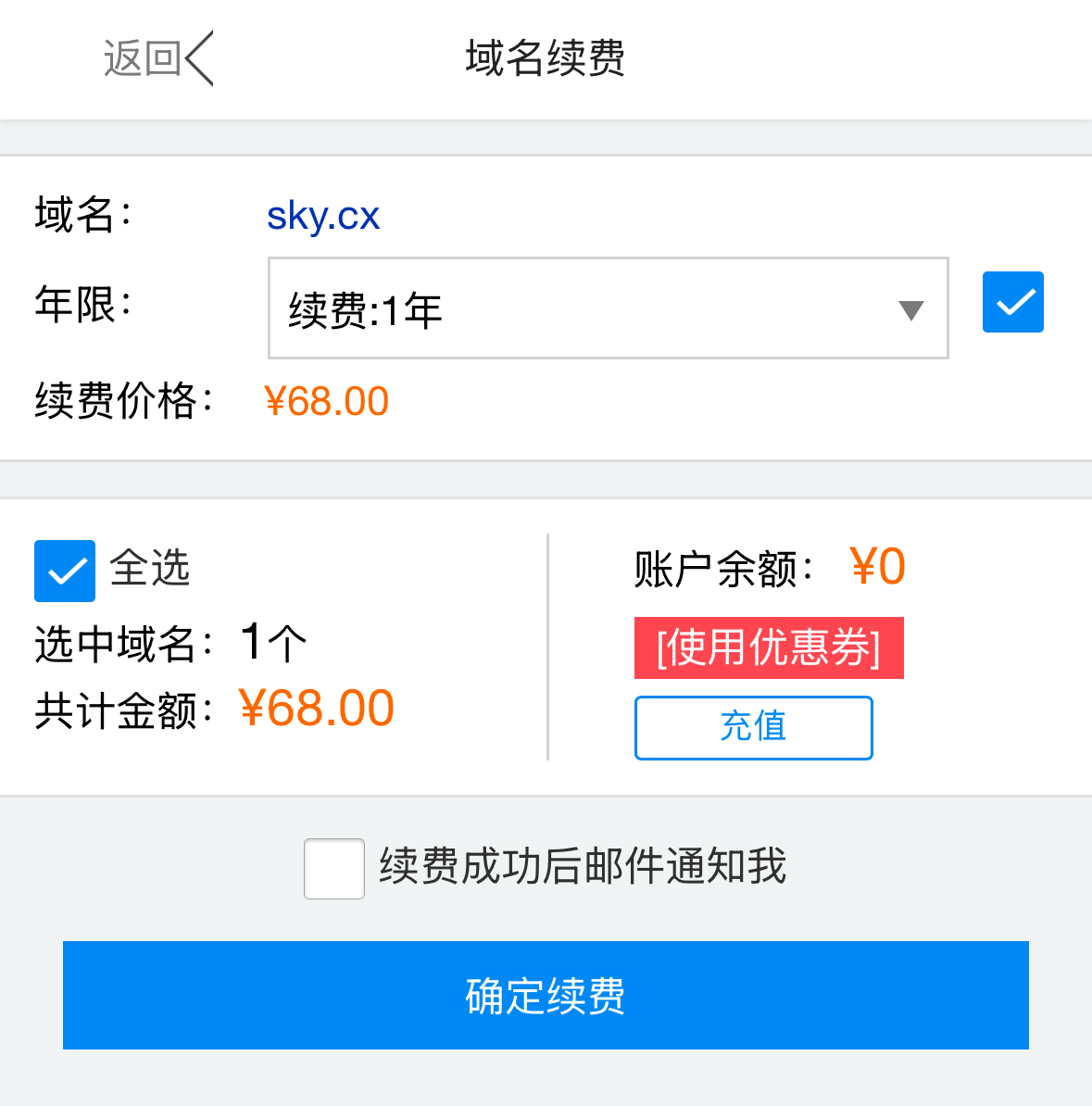 今天心血来潮点续费才发现,前段时间才45注册的