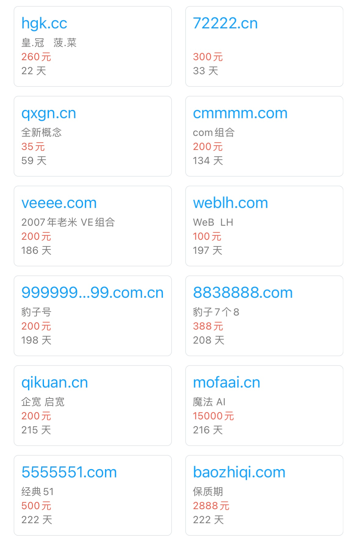 几十个域名卖卖