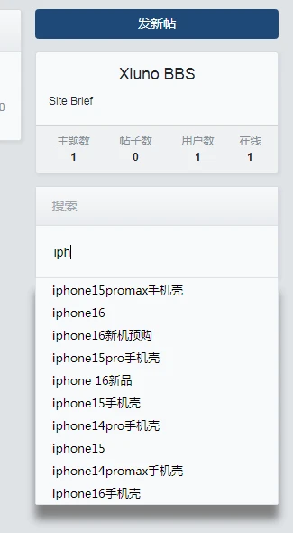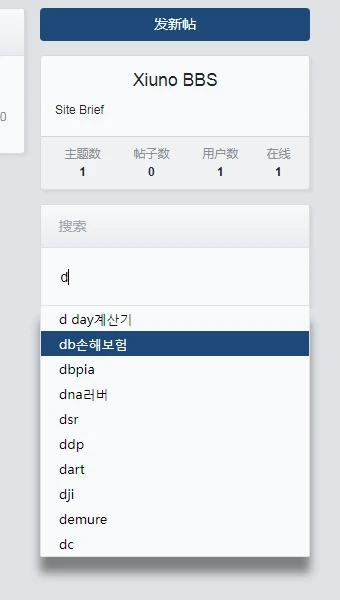 在原插件xn_search的基础上增加类似百度下拉功能,默认搜索站内贴子,后台可以改其他的搜索引擎