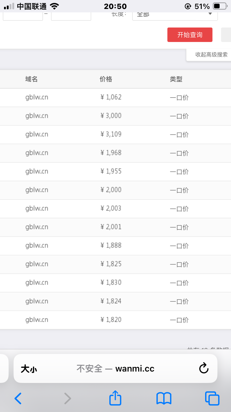 GBLW.CN 售价888,不到历史成交价的一半,很多后缀都是白金词溢价