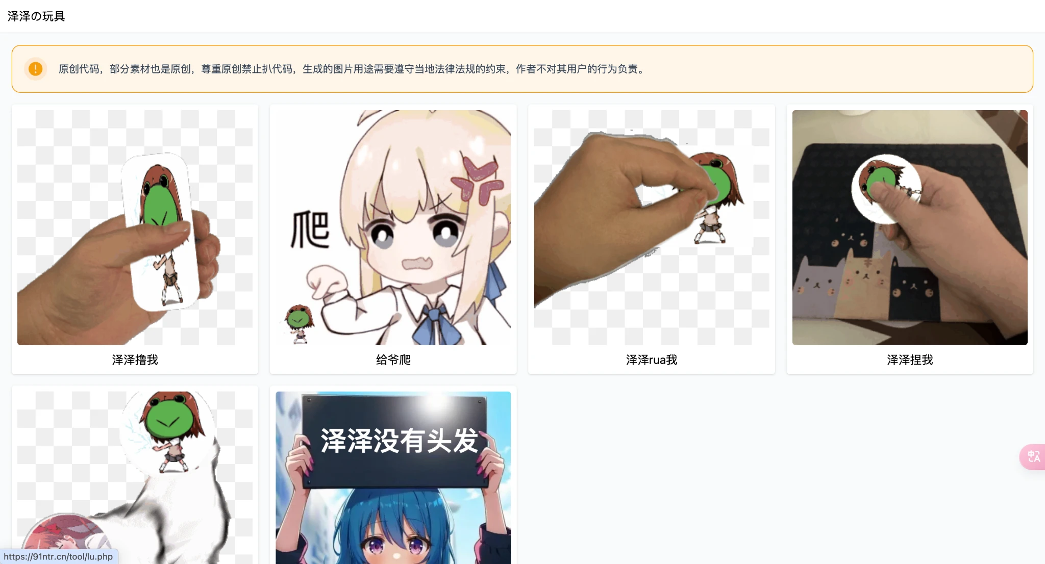 听了 王富贵 的建议,搞了【泽泽撸我】,素材是泽泽的左手,因为平时确实用左手,之前发的工具链接失效了,因为我都改成php后缀了,方便几个项目合并,然后又做了个工具的首页