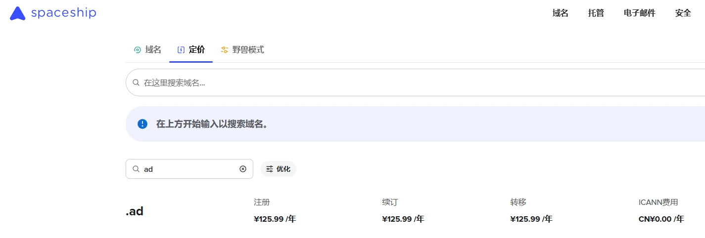 spaceship可以注册.ad域名了