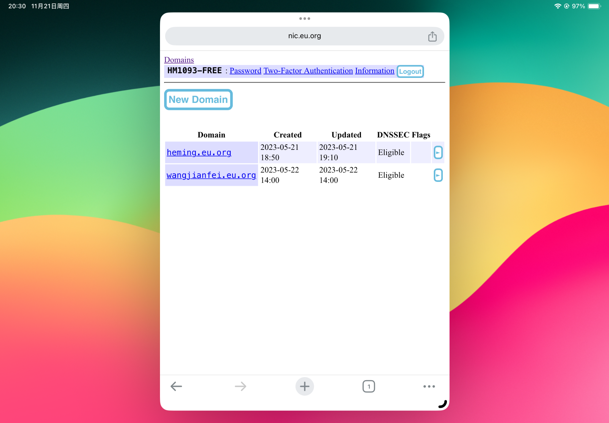 刚刚卖了两个eu.org域名,还剩下wangjianfei.eu.org 没卖,